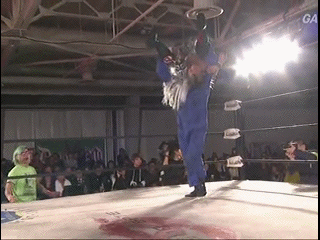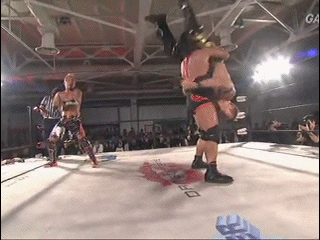 Yosuke is one of the few gender-related gimmicks that I find funny, he cracks me up. Yosuke and Kotoka start off and Yosuke hits a shoulderblock. Yosuke sits on Kotoka’s face but Kotoka kicks him in the chest. Dragon Kid and T-Hawk tag in, I still love Dragon Kid, which I realize is an outdated opinion. Dragon Kid knocks T-Hawk out of the ring, Yosuke comes in it but Dragon Kid tags in Kotoka. Kotoka stomps on Yosuke before a triple headlock is applied. Yosuke isolates Dragon Kid but Dragon Kid elbows him, Dragon Kid goes for the handstand kneedrop but he gets a kiss instead. Has every male puroresu wrestler been kissed in the ring at some point? Wrestling is funny. T-Hawk and Kotoka fight in the corner and T-Hawk hits a vertical suplex. Overly contrived chop to the chest by T-Hawk, Kotoka eventually kicks T-Hawk in the head and T-Hawk bails out of the ring. Yosuke comes in but Kotoka dives out of the ring onto T-Hawk. Dragon Kid comes in, Yosuke dumps him onto the apron and goes for a kiss but Dragon Kid wisely blocks it and rams him into the turnbuckle. Front flip stunner by Dragon Kid but the Tiger Feint Kick is ducked. Hip attack by Yosuke and Dragon Kid is double teamed in the corner. Leg drop by Yosuke to Dragon Kid, he goes up top but T-Hawk grabs him. Kotoka puts Yosuke on his shoulders as Yosuke for some reason cooperates, allowing Dragon Kid to hit an avalanche hurricanrana. T-Hawk comes in and chops Kotoka and he hits a sit-down powerbomb for a two count. T-Hawk picks up Kotoka and drops him with the Night Ride for a three count. This wasn’t bad, they went a little too far in the ‘overly contrived’ department, I love flashy moves but not when it takes too long to set them up. Yosuke is funny though so we have that. Score: 4.5