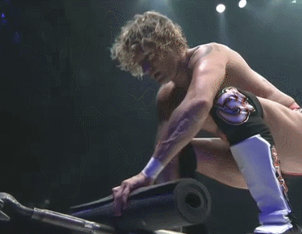 Hulk and Takagi begin the match and start trading elbows, Hulk flips around and he hits an armdrag. Dropkick by Hulk and Takagi rolls out of the ring. Tanaka and Shimizu come in the ring and trade chops, they both go for shoulderblocks but have no luck. Shimizu finally knocks over Tanaka, Takagi comes in but he is shoulderblocked to the mat as well. Shimizu tags in Hulk, snapmare by Hulk and he dropkicks Takagi in the back of the head. Hulk knocks down Takagi with a high kick and stomps him down in the corner before tagging in Shimizu. Double Irish whip to Takagi and he is double teamed, Hulk kicks at Takagi but Takagi gets away and lariats Hulk out of the ring. Shimizu runs in but he falls out of the ring too, and Tanaka meets them out there as he pulls out a table. Tanaka puts Shimizu on the table, he goes up to the top turnbuckle and hits a plancha through the able. Takagi grabs Hulk and throws him hard into the ring post, Tanaka gets a piece of table and he hits Hulk in the leg with it while his leg is against the ring post. Takagi gets into the ring with Hulk as Hulk is isolated, Tanaka comes in and he elbows Hulk in the corner. Elbows by Tanaka but Hulk kicks him back and they trade blows. Takagi comes in the ring and he hits a knee drop, double Irish whip to Hulk and he is dropped with a double armdrag. I don’t understand why Shimizu doesn’t come in to help. Finally he does but is promptly thrown back out, Tanaka puts Hulk near the corner and he hits a tornado DDT for a two count. Takagi elbows Hulk into the corner but Hulk kicks him back and hits a missile dropkick. He makes the hot tag to Shimizu and Shimizu shoulderblocks Tanaka before slamming Takagi. Shimizu hits a double lariat vertical suplex on both of his opponents, Irish whip by Shimizu to Takagi but Takagi knees him. Vertical suplex by Shimizu but Takagi back bodydrops out of a powerbomb attempt. Takagi and Shimizu trade strikes, big lariat by Shimizu but Takagi snaps off a backdrop suplex. Spear by Shimizu and both wrestlers tag in their partners.