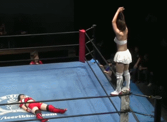 Sera doing double duty for reasons unknown. Fujita charges Sera to start and hits elbows, lariat by Fujita and she ties up Sera in a knot before posing. Dropkick by Fujita but Sera clubs her back and throws down Fujita by her hair. Sera does it again and she chokes Fujita in the corner. Scoop slam by Sera and she applies a crab hold, but Fujita makes it to the ropes. Double knee by Sera, she picks up Fujita but Fujita hits a hard shoulderblock. Scoop slam by Fujita, cover, but it gets two. Fujita elbows Sera and they go back and forth, Sera goes off the ropes but Fujita avoids the dropkick and hits a seated senton. Fujita picks up Sera but Sera slides away and hits a drop toehold. Double knee drop by Sera and she hits a Schwein, cover by Sera but it gets two. Sera throws Fujita into the corner and she hits a running elbow followed by a running double knee strike. Cover, but it gets two. Sera elbows Fujita, Irish whip by Sera but Fujita hits a double chop. Scoop slam by Fujita, she picks up Sera but Sera sneaks in a small package for two. Dropkick by Sera and she applies a crab hold, but Fujita wiggles to the ropes. Sera picks up Fujita and hits a Samoan Driver, she goes up top and nails the diving double knee drop for the three count cover! Another fun match by Sera. I don’t think that Fujita is a great wrestler but she is easy on the eyes anyway, so at least she brings something to the table. Overall the match was a bit above average, nothing offensive.