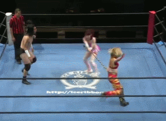 This match is for the Triangle Ribbon Championship. They take turns posing to begin until Shibiresasu throws Matsumoto out of the ring. Scoop slam by Shibiresasu to Nitta but Nitta hits him with her tail. Nitta rolls up Shibiresasu for two but Shibiresasu clubs her in the back and hits a scoop slam. Matsumoto finally returns and kicks Shibiresasu, Matsumoto gets Nitta by the tail and swings her around the ring by it. Matsumoto hits a crossbody on both of them for a two count, but poses for too long and Nitta hits her with a Backstabber. They do some wonky pins with no luck until Shibiresasu boots Matsumoto and chops Nitta to the mat. Shibiresasu grabs both and hits a double vertical suplex, but both roll out of the way of the leg drop. Double Shining Wizard to Shibiresasu and Matsumoto rolls up Nitta for a two count. They trade pins back and forth with no luck, Shibiresasu hits Nitta from the apron but Nitta snaps his neck on the top rope and Matsumoto dropkicks him back to the floor. Ne Kohistra by Nitta to Matsumoto and she gets the three count! This was silly and short, as all of Nitta’s matches are. I don’t personally understand the appeal, it is not for me. Just a meaningless midcard match.