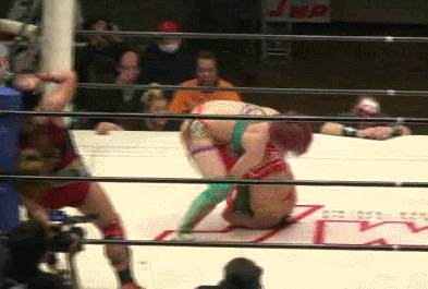 DDT by Satomura and she goes off the ropes but Konami hits her from the apron. Strike combination by Kana but Bolshoi kicks her when she goes off the ropes. Cartwheel kneedrop by Satomura and she tags in Bolshoi. Bolshoi picks up Kana and hits a release German suplex. Tiger Feint Kick by Bolshoi, she charges Kana but Kana slaps on a cross armbreaker. Kana picks up Bolshoi but Bolshoi applies a triangle choke. Ankle hold by Bolshoi but Kana gets out of it with a German suplex. Kick to the head by Kana and she tags in Konami. Konami kicks Bolshoi and she rolls up Bolshoi while applying an ankle hold but Bolshoi gets to the ropes. Bolshoi slaps Konami to the mat and covers her, but the pin is broken up. Bolshoi holds Konami but Kana gets in the ring and kicks Bolshoi in the head. Satomura takes care of Kana and then hits a backdrop suplex on Konami. Bolshoi grabs Konami by the leg and rolls her around the ring before locking in the hold. Kana runs in to break it up, Bolshoi picks up Konami and she applies the Dojime Sleeper. Konami struggles for a moment but has to tap out! This was a slower paced mat-based match, which was the right move with the match being surrounded by title matches. They still kept the match moving so it was never boring, it just lacked some oomph. But it had Kana, so there is that, and both teams showed great teamwork. Score: 6.0