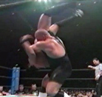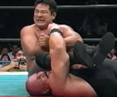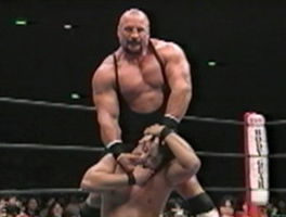 Fans of American wrestling remember Scott Norton as part of "Fire and Ice" or as one of the silent strong men of the nWo that did little of note during his occasional stints in WCW. He didn't win any titles in WCW but he also didn't lose much either, as he stayed in the mid-card as the enforcer of one of the largest heel groups in wrestling history. But when he wasn't standing around looking big in WCW, he was kicking ass in New Japan as one of the greatest gaijins that ever wrestled in the promotion. During his career in New Japan, which lasted over 100 tours (the most of any gaijin wrestler in New Japan history), Scott Norton was a multi-time singles and tag team champion and won the G1 Tag League twice (once with Shinya Hashimoto and once with Keiji Mutoh). Since he was a gaijin he never won the G1 Climax (none ever have), but he did reach the semi-finals in 1995 and 1997. After wrestling professionally for under two years Norton got his first shot at the IWGP Heavyweight Tag Team Championship, showing how much New Japan thought of his abilities, and his last title shot came in 2005 when even in his 40s he was bigger and stronger then most other wrestlers. Course, Yuji Nagata was no slouch either but at this point he also had never held the IWGP Heavyweight Championship. In fact, this was his first shot at the IWGP Heavyweight Championship after it was held up due to Masahiro Chono's injury. He had just returned from a stint in WCW as part of his learning excursion and was ready to show all that he had learned. He was less experienced then Norton was however as Nagata debuted several years after Norton, and he had also yet to win his first championship title. But the crowd was solidly behind him as Norton as part of the hated nWo, and history was also on Nagata's side as a gaijin hadn't held the IWGP Heavyweight Championship since February of 1991 (Vader). It was a battle between the technical and the powerful, and going in no one was sure just what the outcome of the clash would be. The stage is set. As Norton came down to the ring, his nWo entourage was with him, including Keiji Mutoh and Hiroyoshi Tenzan. Nagata also had a posse though as well as the support of the crowd. They circle each other to start the match, Nagata goes for a few kicks but Norton shrugs them off. Nagata keeps out of Norton's range until they tie-up, and Norton chops Nagata into the corner. Irish whip by Norton but Nagata avoids the charges and hits a arm drag. Kicks by Nagata, he lands an enzigieri and drops Norton with a backdrop suplex! Norton immediately rises to his feet and levels Nagata with a lariat, but Nagata also quickly recovers and the two face off again. Tie-up, Nagata puts Norton's arm over his shoulder and hits a trio of armbreakers. Norton picks up Nagata though and delivers a side slam, he drags Nagata to his feet, Irish whip, and Norton delivers the Samoan Drop.