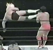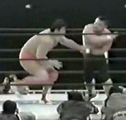 Big boot by Taue onto Misawa and he drops him onto the top rope. Kawada is tagged in, and he drops a knee onto Hansen before kicking him in the back. Kawada goes for a powerbomb but Hansen blocks it. Kick to the face by Kawada and a lariat sends Hansen crashing to the mat. Kawada picks up Hansen and goes for a suplex, but Hansen reverses it into his own vertical suplex and delivers a dropkick. The announcer tells the crowd that only two minutes remain as Hansen makes the tag to Misawa. Irish whip by Misawa from the corner, reversed, but Misawa hits a rebound cross body followed by a jumping kick. Misawa goes for an elbow but Kawada blocks it and delivers the Gamengiri. This gives him time to tag in Taue, Taue picks up Misawa and drops him throat first onto the top rope. He then picks up Misawa and goes for it again, but Misawa elbows him back. Powerslam by Taue, but it gets a two count. Taue picks up Misawa and nails the Dynamic Bomb, cover, but again Misawa gets a shoulder up. Taue picks up Misawa and goes for a chokeslam, but Misawa throws him off. He goes for another Dynamic Bomb, but Misawa reverses it with a hurricanrana for a two count. Misawa tags in Kobashi, Taue kicks Kobashi, Irish whip, but Kobashi ducks Taue's lariat attempt and hits a diving shoulder block. As Kobashi picks up Taue the bell rings, and the time limit has expired. The crowd, exhausted, lets out a slight sigh when the bell rang but soon began cheering, giving the All Japan wrestlers the ovation they deserved. With a 30 minute time limit and their top six wrestlers in the match, it seemed unlikely that a definite outcome would take place as most of All Japan's biggest matches went 30 minutes or longer and that is only with two or four wrestlers, let alone six. But they didn't hold anything back as each team had big moves hit and there were several close nearfalls. Oddly, it was Johnny Ace that came the closest to getting the pinfall with the moonsault while both of this teammates held their opponents back, but Kobashi managed to get a shoulder up and tagged out not long after. Historically speaking, this was a big match for All Japan as it was the largest crowd ever that had witnessed an all All Japan match. All Japan had participated on one of New Japan's Tokyo Dome events in the early 90s, but the matches were inter-promotional, not an All Japan wrestler against another All Japan wrestler. All Japan of course packed Budokan Hall on a regular basis and was very popular in Tokyo, but oddly they didn't run the Tokyo Dome on their own until 1998. Sadly, this match mostly got pushed under the rug and was never used for storyline purposes in All Japan. Even though it had a major sponsor and was at the Tokyo Dome, a commercial version of the event never was released, perhaps due to the fact so many promotions were on the card no agreement could be made. For years, the only version available was of a handheld camera pointed at the big screen, and most assumed that was the only version that ever made it out of the arena. Several years ago, a pro shot version suddenly emerged, which was the version I reviewed. No commentary was on the event and a few times during the show there is no audio, but since two camera angles were used it was clearly post-produced and not just a hand held. A solid card top to bottom, the All Japan match stuck out as the best on the event and it was a night that those in attendance likely won't ever forget. review completed on 10/29/08 |