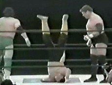 Misawa tags in Hansen, double Irish whip to Kawada and they hit a double shoulder block. Hansen then knocks Ace off the apron before giving Kawada a scoop slam. Elbow drops by Hansen, cover, but Kawada kicks out. Hansen picks up Kawada and goes for a powerbomb, but Taue breaks it up. Taue and Kawada then Irish whip Hansen and shoulder block him to the mat. Kawada tags in Ace who comes off the top turnbuckle with a lariat, cover, but it gets a two count. DDT by Ace and he delivers an elbow drop, cover, but again it gets a two. Irish whip by Ace, reversed, and Hansen hits a back elbow. Hansen kicks Ace in the back and makes the tag to Kobashi. Chops by Kobashi but Ace absorbs the blows and the two trade strikes. Irish whip by Kobashi and he hits a chop, but Ace returns with a dropkick. Tie-up, Ace pushes Kobashi into his corner and makes the tag to Taue. Irish whip by Taue and he gives Kobashi a lariat, cover, but it gets a two count. Taue drags Kobashi to his feet and goes for the Dynamic Bomb, but Kobashi blocks it and back bodydrops out of the hold. Kobashi tags in Misawa, and Misawa dropkicks Taue in the face. Misawa hits a pair of jumping kicks followed by a heel kick, cover, but it gets two. Misawa tags in Hansen, snapmare by Hansen and he applies a reverse chinlock on the mat. Hansen picks up Taue and makes the tag to Kobashi. Double Irish whip, and they hit Taue with double back elbows.