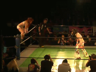 Matsumoto and Mizunami start things off and they dance around the ring (at times literally). Fujimoto comes in and dances around with Matsumoto but Mizunami avoids the double body press. Matsumoto tags in Fujimoto while Kato also tags in.