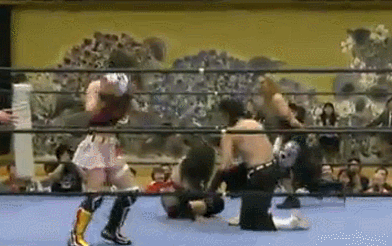 Iida and Kazato start off and they trade wristlocks, shoulderblock by Kazato but Iida hits an armdrag. Reverse STO by Iida but Kazato avoids the dropkick and they trade trips and dropkick attempts. Fukuda and Hoshi are tagged in, Hoshi slaps Fukuda back, Irish whip by Hoshi but Fukuda hits a shoulderblock. Matsumoto and Kong are tagged in next, Kong corners Matsumoto, wristlocks by Matsumoto and she poses Kong. Kong swats at Matsumoto and throws her down by her hair. Kong puts Matsumoto in the ropes and hits her before tagging in Hoshi. Hoshi mounts Matsumoto in the corner and rubs her belly in Matsumoto’s face, snapmare by Matsumoto and she hits a footstomp, but Matsumoto bounces off Hoshi’s belly. Hoshi tags in Kazato, scoop slam by Kong to Matsumoto and he covers her for two. Kneelock by Kazato and she hits a running elbow to Matsumoto. Chinlock by Kazato and he picks up Matsumoto, but Matsumoto gets away and hits a double chop to the chest. Matsumoto tags in Fukuda and Fukuda hits a series of lariats on Kazato. Dropkick by Kazato and he makes the tag to Kong. Kong hits a backdrop suplex on Fukuda and covers him for a two count. Kong goes up to the second turnbuckle but Matsumoto knocks her off, Matsumoto then goes up top and dives off but Kong gets her feet up when Matsumoto jumps off. Lariat by Fukuda to Kong but Kazato breaks it up. Kazato hits a jumping kick on Fukuda, running belly bump by Hoshi and then a suplex by Kong, but the cover is broken up. Kong goes up to the second turnbuckle, she hits an extremely delayed falling elbow drop on Fukuda for the three count! This wasn’t good but I do enjoy when an intergender match just seamlessly has male vs. female encounters with it just feeling natural. But that doesn’t make it an entertaining match by default, it was just slow to develop and never really got hot. Plus the comedy didn't really do much for me. A sub-par start to the show.