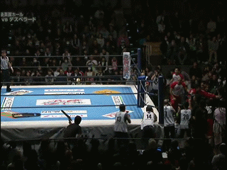 This match is for the NWA World Jr. Heavyweight Championship. Kimura takedown by Liger but Desperado gets a foot on the ropes. Liger controls the action with submission holds before hitting a tilt-a-whirl backbreaker. Armbar by Liger but Desperado’s buddies come down and attack Liger’s arm with a chair. Desperado humorously hides the referee’s eyes while Taichi and Michinoku attack Liger on the floor. Desperado joins them and he hits Liger’s arm with the bell hammer. Desperado puts a chair on Liger’s arm and hits it with another chair as Liger appears to be in considerable pain. Back in the ring Desperado stomps down on Liger’s arm. Armbar by Desperado and he hits a body press onto Liger’s arm. Desperado sets up Liger in the corner and puts him up on the top turnbuckle, and he goes after Liger’s mask. The referee gets Desperado off but Desperado flings the referee out of the ring. Normally this would be a DQ, but not in New Japan. Liger hits a lariat but he does it with his bad arm so it hurts him anyway, then Taichi runs in to beat up Liger. Tiger Mask runs down for the save and he hits a tope suicida onto Taichi and Michinoku. Shotei by Liger, he puts Desperado up on the top turnbuckle and he hits a Frankensteiner. Desperado goes off the ropes and he hits a spear. Desperado sails out with a dangerous looking tope con hilo because he is nuts, he gets back in the ring and waits for Liger to return. Desperado dropkicks Liger as he returns to the ring and he hits a Last Ride for a two count. Cross armbreaker by Desperado but Liger gets a foot on the ropes. Guitarra de Angel by Desperado, but Liger gets a shoulder up. Desperado goes for a hurricanrana but Liger catches him with a powerbomb. La Magistral by Desperado, but that also gets a two. Desperado goes off the ropes but Liger hits a Shotei. Brainbuster by Liger but it gets a two count. Liger Bomb by Liger, he puts Desperado up on the top turnbuckle and hits the avalanche brainbuster for the three count. Liger is still the champion! I enjoyed this match, it was worked really smart. The arm work was good, Liger sold it the whole time (even when he occasionally used it), and Tiger Mask negating the interference worked well. Liger is limited these days but he can still put on an entertaining match within those limitations. Score: 7.0