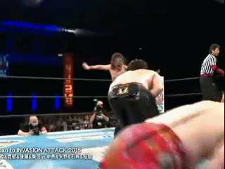 The Bullet Club attack before the match starts and control the action until Kojima and Tenzan make a comeback, suplexing Gallows. Anderson is then double teamed and Tenzan tags in Honma. Honma chops Anderson and he hits a scoop slam, but he misses the Kokeshi. Anderson rubs his arm in Honma’s face and he tags in Hall. The Bullet Club takes turns on Honma until Honma hits a lariat on Anderson which gives him time to tag in Kojima. Kojima chops Anderson in the corner and he hits a diving elbow drop. Anderson gets up and trades chops with Kojima, roaring elbow by Kojima but Anderson hits a heel kick. TKO by Anderson, but Kojima gets a shoulder up. Kojima comes back with Koji Cutter and he tags in Tenzan. Gallows is also tagged in, Gallows kicks Tenzan in the throat and he elbows Tenzan in the corner. Lariat by Tenzan and he headbutts Gallows in the corner. Calf branding by Tenzan and he covers Gallows for a two. Mongolian Chops by Tenzan but Gallows hits a big boot and tags in Hall. Hall punches Tenzan but Tenzan hits a heel kick. Tenzan tags in Honma and Honma elbows Hall before hitting a face crusher. Hall avoids the Kokeshi and Honma is triple teamed in the corner. Lariat by Hall to Honma but the cover gets two. Hall picks up Honma but Honma slides away and Kojima lariats Hall in the back of the head. Tenzan is in also and with Kojima they drop Hall with an assisted neckbreaker. Honma goes up top and he nails the diving Kokeshi for the three count. This was a better match, a little shorter then I’d have liked but everyone got a chance to do something. I like Tenzan and Kojima in the role of entertaining midcard tag team wrestlers and the Bullet Club B Team looked fine in defeat. A pretty fun match. Score: 6.0