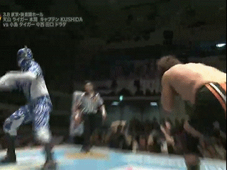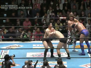 Calf branding by Tenzan and he suplexes Taguchi. More Mongolian Chops but Taguchi hits a hip attack. Taguchi tags in Kojima and Kojima hits rapid fire chops on Tenzan in the corner. Jumping elbow by Kojima and he hits a diving elbow drop. Kojima and Tenzan trade chops and Tenzan hits a heel kick. Tenzan tags in Captain New Japan and Captain New Japan hits a shoulderblock. All of Captain New Japan’s teammates run in the ring and Kojima is assaulted in the corner. Diving headbutt by Captain New Japan, but Kojima kicks out of the cover. That was Captain New Japan’s moment, and it was wasted. Taguchi runs in and hits Captain New Japan with a hip attack, then Taguchi hip attacks everyone else as I realize how much I hate Taguchi. What a goober. Dorada files out of the ring with a moonsault, while in the ring Kojima hits the Koji Cutter on Captain New Japan. Kojima lariats Tenzan and then lariats Captain New Japan to pick up the three count. I would love it if just once New Japan would surprise me and have the wrestler designated to take the fall actually picked up the pinfall victory. Maybe one day, but today was not that day. Dorada is still awesome but otherwise nothing special, aside from Tenzan flipping out on Kojima after the match and kicking his ass. Score: 4.0