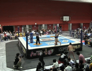 This match is part of the Best of the Super Jr. Tournament. They tie-up to start, Gedo pushes Liger into the ropes and he gives a clean break. They trade holds with neither getting a clear advantage, Gedo works a side headlock but Liger Irish whips out of it. Liger gets away from the Gedo Clutch, they end up back on the mat and Liger twists Gedo's ankle. Bow and Arrow by Liger and he wraps up Gedo in a submission, but after a moment he releases the hold. Chops by Liger in the corner but Gedo dropkicks Liger in the knee. Gedo pulls Liger's leg towards the ring post and he slams Gedo's leg into it. He does it again and a third time, and Liger flops to the floor. Gedo goes back in the ring with Liger slowly following, Gedo grabs Liger but the leg and he hits an elbow drop to it. Leglock by Gedo but Liger gets to the ropes to force a break. Gedo puts Liger in another leg submission but again Liger makes it to the ropes. Figure four leglock by Gedo but Liger gets another break via the same method as the last two times. Running out of different ways to say that. Dragon screw leg whip by Gedo but Liger rolls up Gedo for a two count. Kick by Gedo, he goes off the ropes but Liger hits a tilt-a-whirl backbreaker. Liger charges Gedo in the corner but Gedo moves and snaps Gedo's neck over the top rope. Cover by Gedo while using the ropes for leverage but the referee catches him. Gedo argues with the referee, allowing Liger to schoolboy him for a two count. La Magistral attempt by Liger but Gedo blocks it for two. Gedo goes for the Gedo Clutch but Liger blocks it and hits the Lou Thesz Press for two. Shotei by Liger but that gets a two as well. Liger picks up Gedo and goes for a brainbuster but Gedo slides down his back, Liger grabs Gedo and he quickly applies a European Clutch for the three count! I adore Liger but this one didn't do a lot for me. The leg work was solid but ultimately meant nothing, neither wrestler really hit any of their big signature moves and then the match was over. I think if I was there live I'd probably be disappointed, it wasn't a bad match but it was completely forgettable.