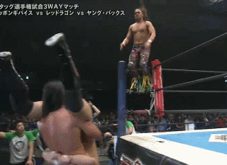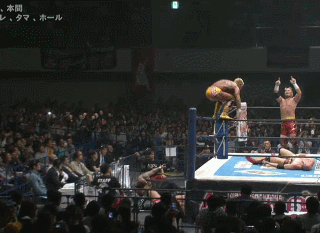 Nakanishi gets the better of it, he clubs on Nagata and puts him in the Argentine Backbreaker, Nagata's friends come in the ring but Nakanishi throws Nagata at them all. Nagata catches Nakanishi with an exploder but Nakanishi makes the tag to Captain New Japan. Everyone attacks Nagata in the corner, Captain New Japan goes up top and he hits the diving headbutt for a two count. Liger comes in and Shoteis Captain New Japan but Taguchi hip attacks Liger out of the ring. Tiger Mask hits a tope suicida on Taguchi, then KUSHIDA hits a pescado on Tiger Mask. Dorada sails out on all of them wit a step-up tope con hilo, then Nakanishi hits his version of a pescado. Nagata and Captain New Japan are still in the ring, Taguchi goes to hip attack Nagata but he hits Captain New Japan on accident. Nagata busts out the wrist-clutch exploder on Captain New Japan, and he picks up the three count. Just once, New Japan needs to surprise me in these opening matches and have Captain New Japan pin Nagata or something. A couple neat spots but otherwise just your regular opening tag match. Its a bit of a tired formula but it is what it is, nothing offensive anyway.