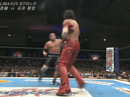 Nakamura gets the first real offensive of the match as he knees Ishii to the mat, kicks to the chest by Nakamura but Ishii returns to his feet and elbows Nakamura in the leg. Side headlock by Ishii but Nakamura Irish whips out of it, shoulderblock by Ishii and he hits a headbutt. Chops by Ishii and he headbutts Nakamura against the ropes. Ishii chops down Nakamura in the corner but Nakamura gets back up and elbows Nakamura but Ishii elbows Nakamura to the mat. Nakamura returns to his feet and they trade slaps, Nakamura elbows Ishii into the corner but Ishii headbutts him. Irish whip by Ishii but Nakamura plants him with a heel kick. Nakamura kicks Ishii into the corner and he charges Ishii, but Ishii hits an elbow. Jumping kick by Nakamura, cover, but Ishii kicks out at two. Nakamura goes for the inverted powerslam but Ishii blocks it, Nakamura goes off the ropes but Ishii drops him with a regular powerslam. Ishii chops Nakamura into the corner, Irish whip by Ishii and he hits a lariat. Vertical suplex by Ishii, he picks up Nakamura but Nakamura hits a back bodydrop. Back up they trade elbows but Nakamura knees Ishii when he charges in and knees him in the ribs in the corner for a two count cover. Nakamura knees Ishii some more and he hits a front suplex. Nakamura charges Ishii but Ishii moves and he hits an inverted powerslam.