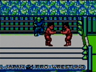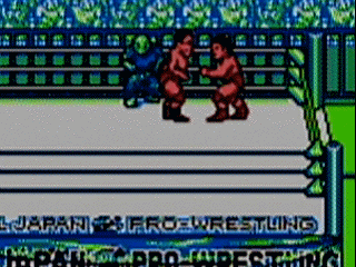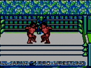 Platform: Nintendo Gameboy Graphics: Just a warning for the images and GIFs, I am playing this on a Nintendo Gameboy Player which colorizes the game. Naturally on the original Gameboy, there was no color, but I figured I may as well play the game as it was best presented. Even though of course the graphics are from the original Gameboy, it was still possible to tell who some of the wrestlers were. The Americans and Giant Baba in particular were instantly recognizable, while some of the other Japanese wrestlers all looked extremely similar. But the move animations were surprisingly good, the Oklahoma Slam and suplexes looked nice, and overall I don't think the graphics held the game back.