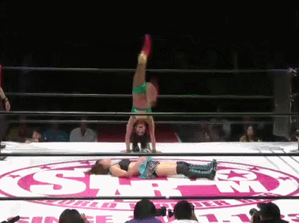 Act Yasukawa and Kris Wolf vs. Alex Lee and Holidead Contrary to rumors you may have read online, Yasukawa is not retiring and is still plugging along. Holidead is another wrestler I could find very little on but she wears face paint and acts crazy so I like her. This is a bit higher than usual for Lee on the card so I hope she steps it up a bit, even though this isn’t a big match. Yasukawa and Holidead are the first pair, Yasukawa doesn’t want to engage with Holidead but Lee runs in and hits Holidead from behind. So this is just going to be weird immediately with Lee attacking her own partner. Holidead is triple teamed in the corner but Wolf gets excited and pushes Lee, leading to Lee helping her partner again. Holidead tags in Lee, Lee kicks Yasukawa in the corner and hits a butterfly suplex for two. Lee kicks Yasukawa some more but Yasukawa comes back with a dropkick. Another dropkick by Yasukawa and she hits rolling reverse STOs. Yasukawa makes the hot tag to Wolf and Wolf hits a headscissors takedown followed by a dropkick for two. Irish whip by Wolf but Lee nails a high kick and tags in Holidead. Double flapjack to Wolf and Lee slams Holidead onto Wolf for a two count. Holidead goes for a scissors kick but Wolf ducks it, Wolf goes for a kick but Holidead catches her leg and hits a Bubba Bomb for a two count. Holidead picks up Wolf but Wolf wiggles away, Holidead chokes Wolf but Wolf elbows out of it and hits a high kick. Double knee by Wolf in the corner and she kicks Holidead in the back of the head for a two count. Yasukawa goes up top and hits a missile dropkick, Wolf goes to the second turnbuckle and delivers the diving double kneedrop, but Holidead barely gets a shoulder up. Wolf goes off the ropes but Holidead knees her and hits a modified Unprettier for two. Big boot by Holidead, and she covers Wolf for the three count! Lee and Holidead win the match. This was underwhelming also, even though it had some solid parts. Everyone attacking Holidead at the start didn’t make any sense, especially considering then Lee and Holidead got along just fine after that. Lee, compared to other Stardom wrestlers, is average at best as she just doesn’t have a lot of interesting looking offense and the match didn’t really have any structure to speak of. Wolf showed a lot of energy and they were trying, it just didn’t really connect. Io Shirai and Mayu Iwatani vs. Hiroyo Matsumoto and Santana Garrett This is the match that is going to have the save the show, and I am not sure if that is going to happen. Shirai and Iwatani are fantastic, and the reigning Stardom Tag Team Champions. Matsumoto is a veteran and a long time Freelancer, while this is Garrett’s first match for Stardom. She wrestled at the Stardom USA events a week prior and I guess impressed enough to now be in the main event. Shirai and Matsumoto start the match and do some intro limb work, Shirai goes for shoulderblocks but Matsumoto doesn’t go down. Hard shoulderblock by Matsumoto but Shirai kips up and hits a dropkick. Iwatani and Garrett are tagged in, Irish whip by Iwatani but Garrett hits a shoulderblock. Handstand into a headscissors by Garrett and they trade quick pin attempts with neither having any luck. High kick by Iwatani, she puts Garrett in a camel clutch while Shirai comes in and hits a sliding kick to Garrett’s head. Garrett fights back against both of them and hits a Space Rolling Elbow in the corner followed by a boot to Iwatani for two. Garrett tags in Matsumoto and Matsumoto hits a scoop slam before kneeing Iwatani in the ribs. Matsumoto tags Garrett back in, Russian leg sweep by Garrett and she covers Iwatani for two. Matsumoto comes back in, she puts Iwatani in the corner and knees Iwatani in the ribs. Chops by Matsumoto in the corner, Iwatani goes for a rebound dropkick but Matsumoto swats her out of the way. Irish whip by Matsumoto but Iwatani hits a jumping back elbow, giving her time to tag in Shirai. Shirai hits a double knee on Matsumoto in the corner, she smacks Garrett but Matsumoto hits Shirai from behind. Garrett comes in the ring but Shirai jumps up to the top turnbuckle and hits a double missile dropkick. Garrett and Matsumoto fall out of the ring, Shirai goes to the ropes and hits an Asai Moonsault down onto both of them. Back in the ring, Iwatani and Shirai both put their opponents in stretch holds, but Matsumoto gets out of hers and frees Garrett. Matsumoto slams Iwatani on top of Shirai and she applies a double crab hold to both of them at the same time. They crawl to the ropes together to force a break, Shirai and Matsumoto trade elbows, hurricanrana by Shirai but it gets a two count. Buzzsaw Kick by Shirai, she starts to crawl to her corner but Garrett runs in and knocks Iwatani off the apron. Facebuster by Matsumoto to Shirai, Garrett comes in and she puts Shirai in a submission but Iwatani breaks it up. Garrett stomps Shirai but Shirai drop toeholds her onto the second rope and hits a tiger feint kick. Springboard missile dropkick by Shirai and she tags in Iwatani, Iwatani goes up top and hits a missile dropkick of her own onto Garrett. Iwatani goes up top again but Garrett avoids the diving footstomp. As I would too. Matsumoto runs in and hits a backdrop suplex, boot to the head by Garrett and she covers Iwatani for two. Shirai grabs Garrett, Iwatani goes off the ropes and they hit a facebuster/face crusher combination for a two count. Matsumoto comes back in but she is knocked to the mat, Shirai goes up top as Iwatani grabs Garrett but Garrett gets away from Iwatani and hits a superkick. Garrett then headscissors Shirai off the top turnbuckle onto Iwatani, Matsumoto runs in and destroys Shirai with a lariat. Fisherman suplex hold by Garrett to Iwatani, but Iwatani gets a shoulder up. They trade superkicks and suplex attempts, Matsumoto comes in and she powerbombs Iwatani. Shining Stars by Garrett to Iwatani, and she picks up the three count (and the upset)! Garrett and Mat