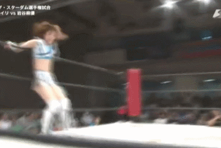 Iwatani re-joins Hojo up top and she suplexes her down to the mat. Iwatani hits a crucifix bomb, but Hojo gets a shoulder up. Iwatani drags Hojo up and goes for the dragon suplex, but Hojo blocks it. Iwatani pulls Hojo back and hits it anyway, but Hojo lands in the ropes so she has to break the hold. Hojo rolls out of the ring and gets the special cure spray (they are putting over Iwatani's dragon suplex as a really big move), Iwatani rolls Hojo back in and she hits a diving footstomp. She goes up top again but Hojo has a second wind and joins her. Hojo puts Iwatani in the tree of woe, she goes up top and she hits a diving footstomp. Hojo puts Iwatani down on the mat, she goes up to the top turnbuckle and she nails the diving elbow drop. She is too hurt to cover right away however, and when she finally does Iwatani is able to kick out. Iwatani is up first and she elbows Hojo, but Hojo elbows her back. They both fall back to the mat again. Iwatani is up first and she goes for her dragon suplex, but Hojo gets away, roll-up by Iwatani but it gets a two count. Spinning backfist and a club to the face by Hojo, she picks up Iwatani and slams her in front of the corner. Hojo goes up top and she nails a second diving elbow drop, and this time she picks up the three count! Hojo is still your champion. This was a great war. I say it like that because by the end both were exhausted, which says a lot because both have amazing cardio. I couldn't even tell at times towards the end if they were just selling really good or legitimately not all there, it turned sloppy but in a good way. Hard to explain. Iwatani having her dragon suplex hold protected was great, and the offensive moves were on point. It also never went too far into being excessive, everything made sense. Just a great match between these two young Stardom stars. Highly Recommended