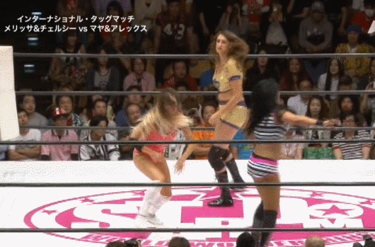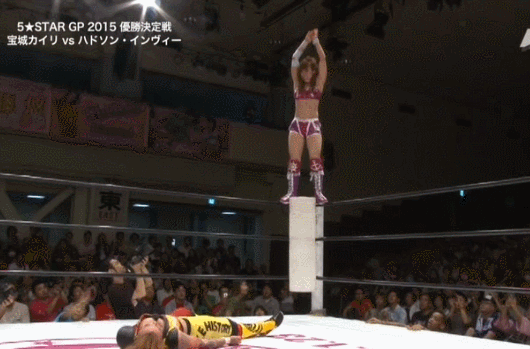 Date: September 23rd, 2015 We have reached the final of the FIVE STAR GP! After a month of action, Kairi Hojo and Hudson Envy won their respective blocks and face off for the crown (there is literally a crown). Also on this card we get the return of Act Yasukawa, and a Goddesses of Stardom Tag Championship match! Here is the full card: - High Speed Championship: Starfire vs. La Rosa Negra Let's get to the action! Starfire vs. La Rosa Negra This match is for the High Speed Championship. This match didn't work out as intended, although it is still an interesting match on paper. Starfire first wrestled for Stardom in last year's FIVE STAR GP, and has been fairly active in the promotion since then, including winning the High Speed Championship. La Rosa Negra debuted for Stardom in this year's FIVE STAR GP, and she is attempting to follow Starfire's path by staying in the promotion instead of just being a one-time thing. The easiest way to do that is to win a title, which is what she is attempting to do here. They immediately start trading slaps and punches before trading boots with neither wrestler going down. Lariat by La Rosa Negra but Starfire slides away, and it looks like Starfire suffered a knee injury as she gets away from La Rosa Negra's grasp. Rotating powerslam by La Rosa Negra, she goes up top and she nails the Rose Splash for the three count! La Rosa Negra wins the championship! It is a shame that Starfire was hurt here, hopefully it is nothing serious although she did not wrestle on the next Stardom event. I am not sure if La Rosa Negra was scheduled to win the match so they just went to the ending early, or if since Starfire was injured they went to Plan B. So it was a non-match not by design, although I am interested in seeing what La Rosa Negra does in the promotion with the title. Chelsea and Melissa vs. Alex Lee and Queen Maya Gaijins collide! Chelsea and Melissa represent Stardom USA and frequently team, with Chelsea being the cute one and Melissa being all business. Lee and Maya are not a regular team as this is Maya's first tour in Stardom, but since neither are in a faction they are easy to just randomly throw together for a match against the California Dolls. Lee is isolated to start and double teamed, Chelsea stays in with Lee and she delivers a heel kick before booting Lee for a two count. Lee boots her back and hits a scoop slam, Melissa comes in to help but Maya comes in too and hits a lariat on both of them. Maya hits a bit boot on Melissa and then nails Chelsea with one as well. Lee picks up Chelsea and hits a scoop slam before tagging in Maya. Maya picks up Chelsea and throws her into the corner, Chelsea goes for a sunset flip but Maya sits down on her for two count. Maya throws Chelsea to the mat and applies a bear hug, she puts Chelsea into the corner but Chelsea kicks Maya and hits a tornado DDT. Chelsea tags in Melissa while Maya tags in Lee, lariats by Melissa and she hits a Samoan Drop for a two count. Maya comes in but Melissa drops her with one as well, Melissa gets on the second turnbuckle but Maya gets her feet up when she jumps off. Chelsea dives in the ring but Maya plants her with a chokeslam, Melissa goes up top again and she hits a missile dropkick. Maya charges Melissa but Melissa holds down the ropes and Maya tumbles out of the ring. Lee hits Melissa with a missile dropkick and kicks her into the corner, butterfly suplex by Lee but it gets a two count. Melissa ducks a kick and lariats Lee, Air Raid Crash by Melissa and she gets the three count! The California Dolls win the match! As far as in-ring goes, the most impressive one here was actually Maya. Tag matches fit her well, she can come in and hit some impressive looking power moves without the match getting repetitious. Chelsea and Lee aren't great so the match dragged a bit while they were in there, which was a good chunk of the match, and Maya/Lee didn't have great chemistry since they aren't a real tag team. Some good spots here and there, mostly by Maya, but overall skippable. Act Yasukawa and Kyoko Kimura vs. Haruka Kato and Momo Watanabe On paper this looks like just another midcard match with two veteran wrestlers against two overmatched and less experienced wrestlers. In reality this is much more special of course as it is not only the return of Kimura after an injury, but the first match for Yasukawa after she was badly injured in a match last February against Yoshiko. Yasukawa has said all long she was coming back better than ever, and she certainly hasn't lost her fire. So while I'd have rather seen her in a more competitive match (there is a 0% chance of Kato and Watanabe winning), it will still be great to see Yasukawa again. Yasukawa and Kato start things off and they start with some mat work. I am probably too giddy from seeing Yasukawa wrestle again but I will try to keep my composure. Yasukawa snaps me out of it by spinning Kato around by her head and then knocking Watanabe off the apron. Yasukawa puts Kato in a stretchy submission hold but Kato elbows Yasukawa and they trade shots. Yasukawa charges Kato but Kato avoids the lariat and applies an armbreaker. Kimura breaks it up but Kato slugs her and tags in Watanabe. Watanabe dropkicks Yasukawa, another dropkick by Watanabe and she hits a missile dropkick off the second turnbuckle. Kato goes up top and hits a diving crossbody, snap suplex by Watanabe to Yasukawa and she gets a two count. Watanabe tackles Yasukawa and hits the Somato, but Kimura breaks up the cover. Kimura puts Watanabe in a sleeper but Kato runs in and breaks it up. Yasukawa gets on the top turnbuckle and hits a missile dropkick to Watanabe, cover by Yasukawa but it gets two. Kimura gets on the second turnbuckle and hits a diving senton, Yasukawa then goes to the second turnbuckle and hits a corkscrew senton for a two count cover. Yasukawa picks up Watanabe but Watanabe slides away, she charges Yasukawa but Yasukawa puts her in the Stretch Muffler until Kato 
