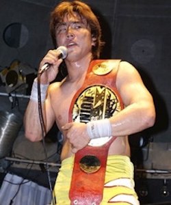 My understanding is the winner of this match gets to wrestle as Muscle Sakai (2nd Generation). There are clothes hanging over the ring for reasons unknown. They trade tie-ups and what not to start, and Machine knocks Fukuda out of the ring. He returns after a moment and Machine drops a knee onto his groin. Machine charges Fukuda but Fukuda applies a cross armbreaker. Machine gets out of it and applies a triangle choke but Fukuda gets away. They trade headbutts, and Machine hits a hard elbow. Chop by Fukuda as they slowly get back up, they trade lariat attempts until Machine knocks Fukuda off his feet. Another lariat by Machine as Honda waddles down the ramp with a ladder. He brings it in and sets up the ladder, both Fukuda and Machine climb up the ladder but Fukuda knocks Machine off. Fukuda gets a microphone and talks on it, but Honda joins him up top and punches Fukuda off of it. Machine climbs up the ladder now and he talks on the microphone as well. Machine pulls down the pants hanging up over the ring and celebrates with them, but the match isn’t over and Machine lariats Fukuda. Machine puts on the pants but Fukuda rolls him up from behind for two. Fukuda applies a cross armbreaker and Machine quickly taps out! Fukuda wins the match and the rights. Well this was awful, I guess for storyline reasons it made sense to Union fans (all none of you) but as a casual fan it didn’t do anything for me. The epitome of a skippable match.