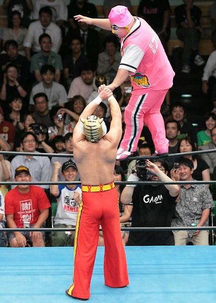 One of the most popular wrestlers with the kids, Kikutaro wrestled mostly in All Japan in 2006 and was still very entertaining with his comedy routine. He had a few singles matches (such as one against Kensuke Sasaki), but he was never considered a serious threat and tended to only squeak out wins with roll-ups and cradles. Even though he didn't win any titles or participate in any tournaments, Kikutaro was a loved part of the opening matches.