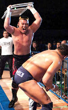 2005 was a rough year in the life of Tenzan. He opened the year as the IWGP Heavyweight Champion, but lost it to Kojima. He got it back a few months later, but only successfully defended it once before losing it again. Every time Tenzan fans think he is getting rolling, New Japan pulls the rug out from under him. As 2005 ended, he won the IWGP Tag Team Championship with Chono and is currently "feuding" with the new booker of New Japan Riki Choshu.